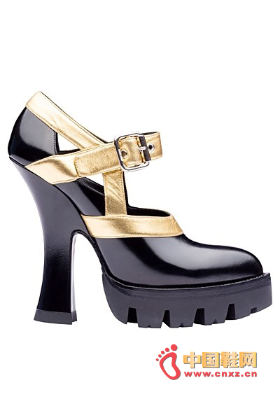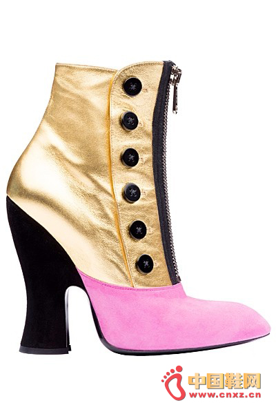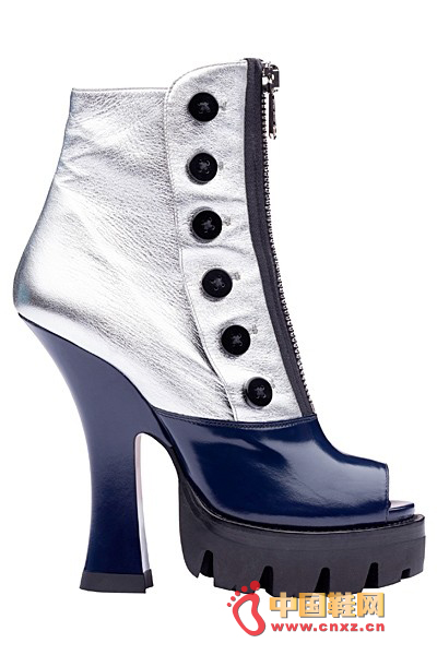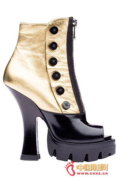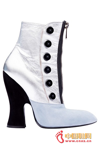 中國鞋網3月27日訊,結合品牌獨具特色的粗彎跟厚底設計,Miu Miu 2013春夏系列的鞋款不再是復古萌妹子的專利。設計師在其中加入了金屬皮革的拼接和橡膠鞋底材質,更能彰顯時尚摩登的氣質。此外,12孔拉鏈短靴也同樣是十分別致的選擇。