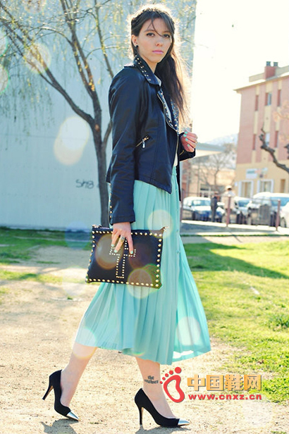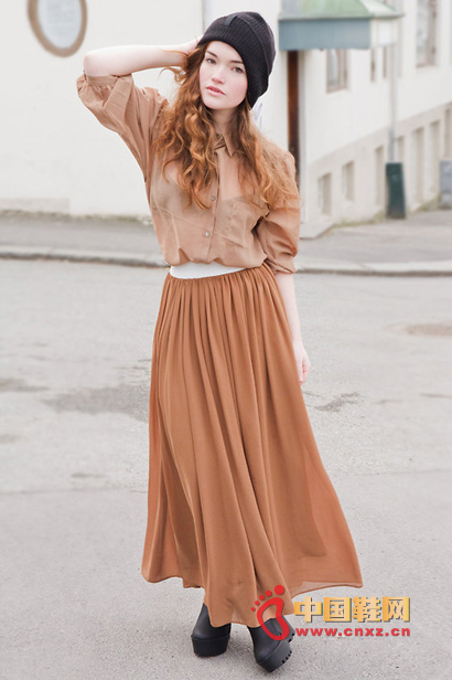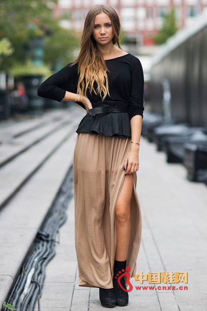 中國鞋網3月28日訊,春日的街頭,越來越多的美眉已經開始換上裙裝出街了。如果你擔心腿型不好看,或者覺得氣溫依舊有點不給力的話,那么就來條飄逸的大長裙吧,既遮住了小粗腿,又增添了一份女人的嫵媚。