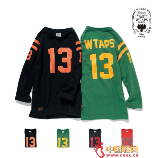 中國鞋網3月29日訊,由里原宿設計師西山徹主理的WTAPS,近日推出全新學院風特色的單品,令人眼前一亮。與之前本季的風格較為不同,此番由全新的七分袖運動服飾與清新風格的丹寧褲作為主打。醒目的數字“13”搭配碩大的WTAPS字樣設計,再加上適合春夏的鮮艷配色,從而呈現與眾不同的整體風格。而丹寧褲則以做舊方式處理,帶有些許古著的風格,有興趣嘗試WTAPS清新風格的朋友不妨試一下這個系列。