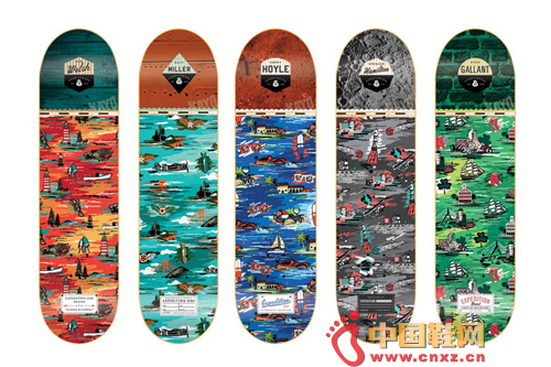 中國鞋網(wǎng)4月3日訊,踏上 Expedition One 新系列滑板向夏天說 “Hello” 吧!Expedition One 在滑板的設(shè)計上向來以夸張而富有視覺沖擊力的圖案見稱,并在這個名為 “Aloha Bitches!” 的系列繼續(xù)書寫傳奇。這六塊專業(yè)級的滑板皆向不同滑手的家鄉(xiāng)致敬,除了于上端標識有各自城市的名稱外,下端更以大面積繽紛多彩的海灘圖案呈現(xiàn),演繹著夏日的歡樂氣息。