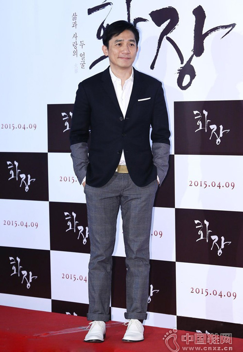 中國鞋網4月7日訊,據臺灣媒體報道,電眼影帝梁朝偉(偉仔)在韓國出席電影《化妝‧火葬》的VIP試映會。試映會現場星光熠熠,梁朝偉、金宇彬、少女時代成員徐賢、beast成員李起光、李貞賢等中韓藝人出席。