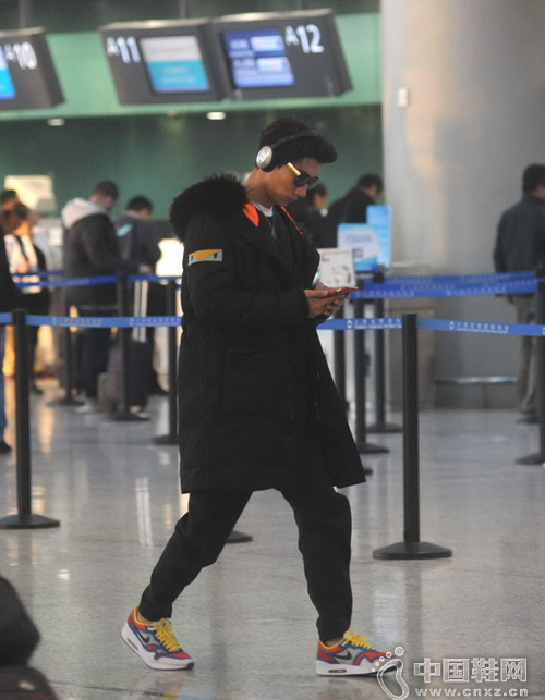 當天張亮戴著墨鏡和耳機乘坐保姆車抵達,出車門后助手連忙為其穿上外套以防感冒,走進機場大廳后張亮一路拿著手機看個不停,不知是否在關心懷著身孕的老婆。(中國鞋網-最權威最專業的鞋業資訊中心。合作媒體:)
