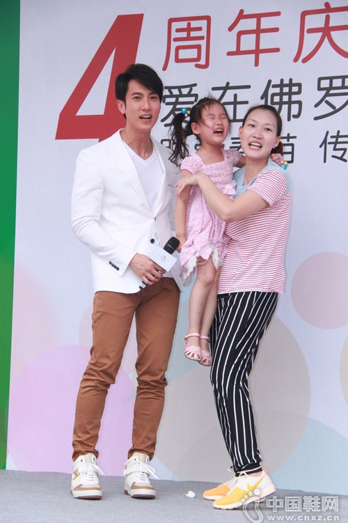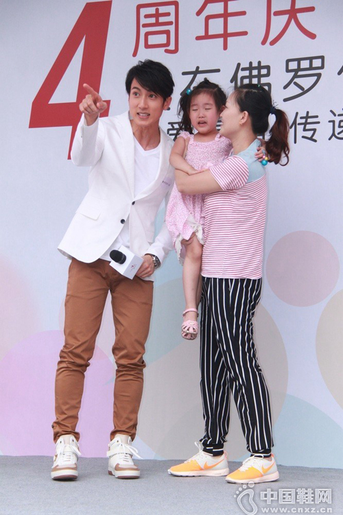 在現場互動環節,吳尊挑選一位與女兒Neinei年紀相仿的小女孩上臺合影。誰知這位小女孩一點也不買這位帥氣奶爸的賬,一上臺就又哭又鬧。吳尊使出渾身解數,也沒將她逗樂,惹得臺下路人大笑不止。最后,在媽媽的安慰下,她才“不情愿”地配合合影。(中國鞋網-最權威最專業的鞋業資訊中心。合作媒體:)