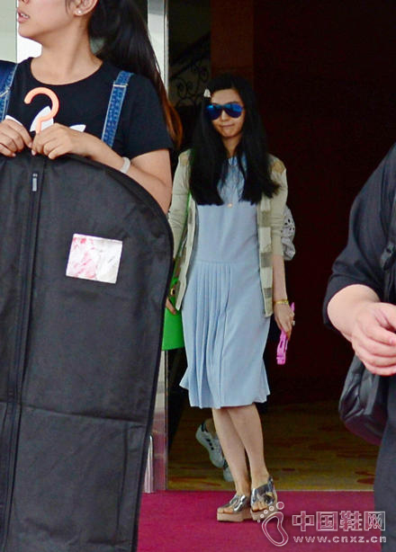 在哈爾濱太平機場從飛機上下來,范冰冰乘坐一輛專門準備的擺渡車到達VIP通道。在助理的陪同下走出機場,范冰冰身穿休閑裙裝,帶著一幅寶石藍色墨鏡,頭戴銀色發夾,一路表情輕松。(中國鞋網-最權威最專業的鞋業資訊中心。品牌推薦: )