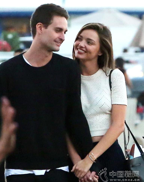 中國鞋網8月5日訊,美國,當地時間8月3日,米蘭達·可兒 (Miranda Kerr)與億萬富翁男友Evan Spiegel牽手現身街頭。