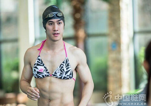中國鞋網8月5日訊,日前,網上爆出一組李治廷穿三點式比基尼的勁爆泳裝照,照片中李治廷身穿女裝比基尼上演濕身誘惑,下水游泳同時還不忘妖嬈展現胸肌。頑皮的李治廷穿上女裝比基尼后,八塊腹肌立現,他似乎很滿意自己的泳裝扮相,在水池邊走起了貓步,更擺出妖嬈的姿勢求關注他那被比基尼上衣包住的大胸肌,那畫面太美,令網友大呼:“看到這比基尼+人魚線的搭配我也是醉了,但還是好想摸摸男神的腹肌啊!”