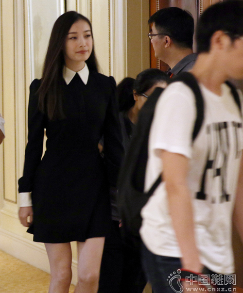 中國鞋網8月28日訊,近日,倪妮現身某酒店,當天倪妮穿著黑色短裙,面無表情走在助理身旁,見記者偷拍也無動于衷,只顧低頭向前走,瀟灑十足。