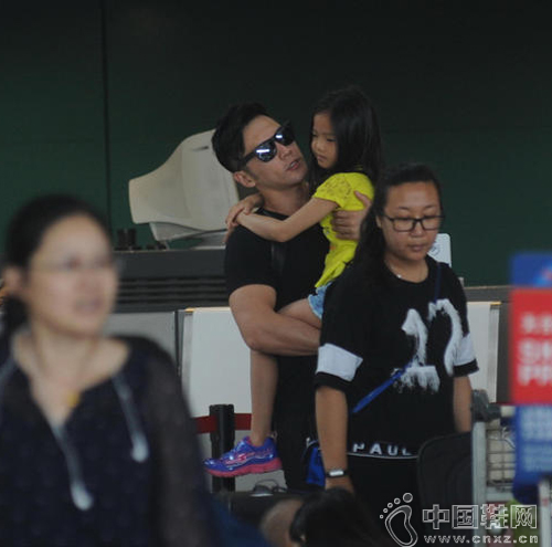 助理在為兩人辦理完登機手續后,鐘麗緹和張倫碩帶著女兒一起前去安檢登機。