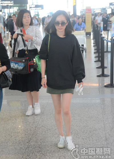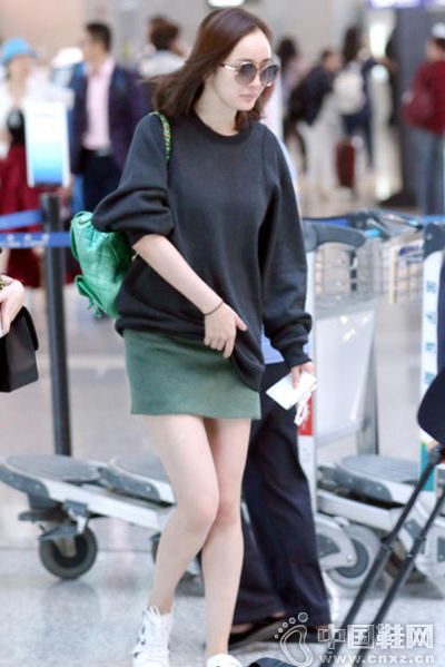 中國鞋網(wǎng)10月20日訊,近日,楊冪現(xiàn)身上海虹橋機(jī)場。楊冪上身穿著長袖衛(wèi)衣,下面穿著超短裙,腳踩平底休閑鞋,露出細(xì)長美腿,背著熒光綠色的包包。