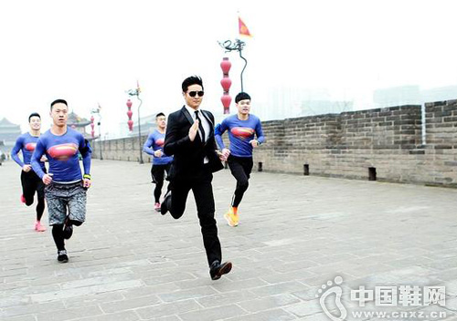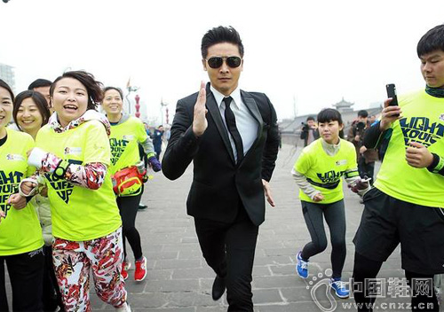 一襲黑色西裝亮相,連見慣了帥男美女的記者們都不由大喊:“好帥啊!”田亮開玩笑說:“反正我們家就我最帥!”有記者說:“我們覺得你兒子也比較帥。”他一樂:“沒我帥好吧?”作為“黑衣人”,自然要和跑團成員擺出幾個你追我趕的POSE。然后在大家做熱身運動時,田亮又換上了運動衫,和大家一起沿著城墻開跑。