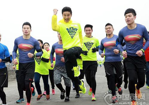 結束健康跑后,田亮在受訪時表示,發起這項公益活動是想借助公眾人物的影響力,讓大家都能動起來,特別是辦公室一族,不要再坐在那里,至少先動起來。“我是從運動員到演員的,骨子里有一種體育情結。我總想做點和體育有關的事兒,剛好又在參加這個欄目,于是就想呼吁大家都能動起來。我們倡導健康的生活理念,也許我在城墻上跑一次只有百人參加,但我希望這個活動的理念能深入到更多人心中,并用這種理念感染別人。”昨天古城冬雨綿綿,霧霾也沒有散去,田亮鼓勵大家說:“以后大家還是健康為上,要選擇適宜的時間進行體育鍛煉,就像我們的口號‘亮力而行’。”