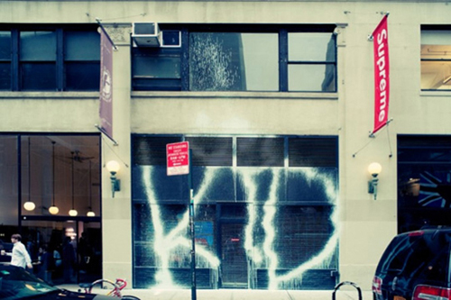 然而國外也不乏現代版本的“大圣爺”,還記得上一月Supreme NYC店鋪被惡搞的事件嗎?不需委托偵探柯南也能分析出,這是出自被稱為“法國街頭涂鴉人”的kidult手筆。相當挑釁的是,kidult有個奇怪的癖好,每當作案時都會拍下整個“犯罪”過程,并在往后時間在網絡上公開,這次Supreme NYC事件當然也是難逃一劫。