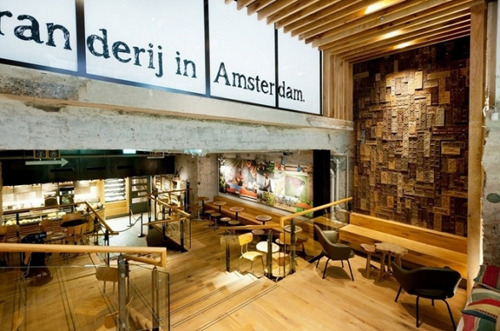 據悉,阿姆斯特丹新店即將在3月8日正式開幕,由于這座建筑物的前身是一家銀行,因此這家星巴克分被昵稱為“The Bank”(不過咋看更像一家精品書店),店內裝潢以環保的概念出發,從座椅、餐桌到天花板均采用二手的荷蘭橡木制作。有別于以往分店,在這座占地430平方米的地下開放式建筑內,將會建成星巴克第一間“咖啡劇院”(Coffee Theater,也就是咖啡實驗室),星巴克會聘請專業咖啡師在此研發最新的咖啡烹煮技術,同時還會不定期在現場教授顧客曲奇的制作方法。想必在這座銀行改造的咖啡店內用餐,不僅能聞到濃郁的咖啡香,還可以聞到鈔票的味道呢!