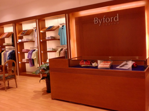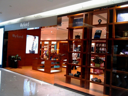 專門店正以深淺啡及米白色作主調(diào),簡潔利落的線條帶出時尚的感覺,配合典雅的油畫、高貴梳發(fā)、柔和的燈光、色彩多樣的服裝及各種皮革產(chǎn)品的冷暖質(zhì)感對比,呈現(xiàn)出 Byford 獨有的英倫氣派,成功地為顧客營造一個舒適自在的購物空間。