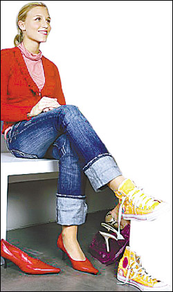 “穿高跟鞋時,如果腿部感到酸痛或有什么不舒服的感覺,最好換穿幾天球鞋!蓖醢怖f,高跟鞋和球鞋交替著穿,可以使長期處于緊張狀態的小腿肌肉獲得及時的放松。白領女性如果因工作需要,在公司時需要穿高跟鞋,最好在上下班時,換穿球鞋趕路;或者在晚飯后,穿球鞋散步半小時至1小時,這對小腿肌肉有很好的放松作用。 (柏蓉)