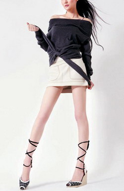 A:把綁帶鞋穿在窄腿牛仔褲外面,不但很好地解決了這個問題,還顯得頗有創意。如果用綁帶鞋配短裙或短褲的話,最好選擇細帶子,且顏色和皮膚比較接近的鞋子,寬綁帶鞋還是留給“九頭身”美女們穿吧!