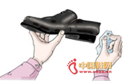 2.用微濕的軟布將鞋面污物、涂過(guò)的鞋油等擦掉(白色、彩色鞋除外)
