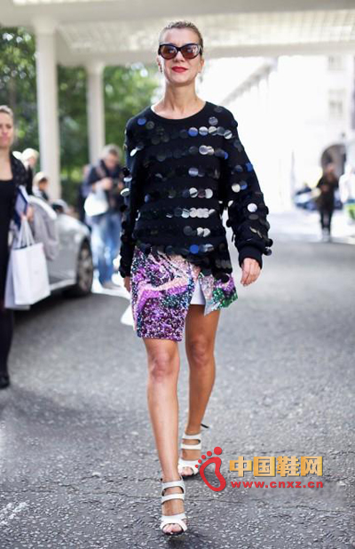 中國鞋網11月9日訊,打破常規,不要被寒流打消了裝扮的熱情,亮片裝風潮襲來,寒秋一樣可以很明媚。秋冬季節,棉毛質地的服裝是最常穿的,寒冷削減了女孩們的活力,失去了打扮興趣...難道就要沉悶過冬嗎?不,讓亮片裝來重拾我們的激情吧,魅力四射的亮片裝飾在外套上、衛衣上也可以是連衣裙上,閃耀街頭,驅趕寒冷的侵蝕,過個靚麗的秋天!
