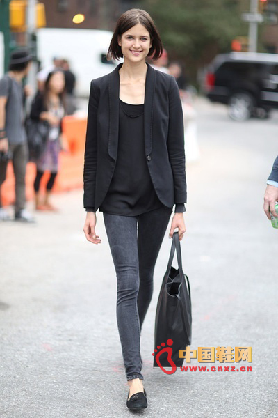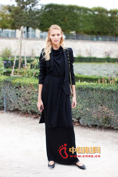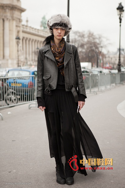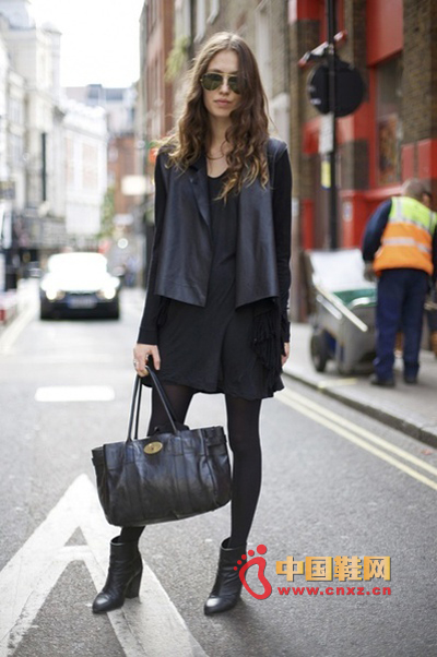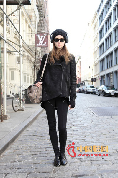 中國鞋網11月16日訊,冬天了,很多人的衣櫥里大部分都是黑色的單品。很多時候黑色的服裝需要色彩的點綴,否則很容易顯得單調沉悶。今天給大家帶來街拍客經典的一身黑搭配,通過材質、風格的變化,把一身黑穿的時尚又有型。