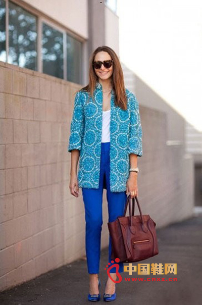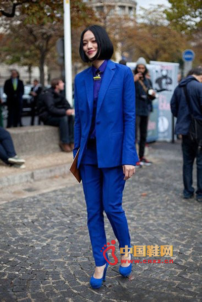 中國鞋網(wǎng)12月4日訊,冬日要時髦穿衣,掌握兩個元素,一個是廓形,二就是色彩。廓形決定質(zhì)感,色彩就打造時髦度。而今年秋冬不同深淺的藍(lán)色洶涌襲來,上演了一出斑斕的藍(lán)色交響曲。不同的藍(lán)色和不同材質(zhì)的面料搭配,可以創(chuàng)造出千姿百態(tài)的效果,可以華麗,也可以休閑,可以明艷,也可以柔和淡雅……讓我們一起來看看街頭的潮人們是怎么演繹藍(lán)色時尚的吧。