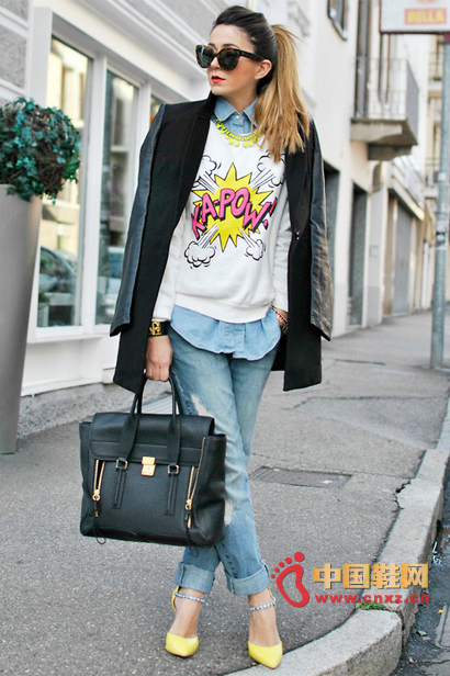 酷感十足 街拍潮人演繹時髦拼袖外套