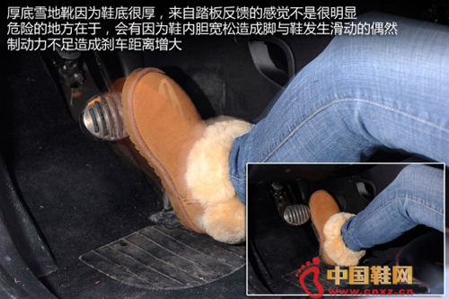 【中國鞋網-鞋與生活】前一陣有報道說穿類似“UGG”的棉鞋開車有隱患,會造成剎車失誤,由此引發出我們一連串對穿不同的鞋會有什么樣的剎車結果的討論。于是我們一位鞋特別多的女編輯自告奮勇充當試車員,一場充滿懸念的剎車距離測試即將展開。