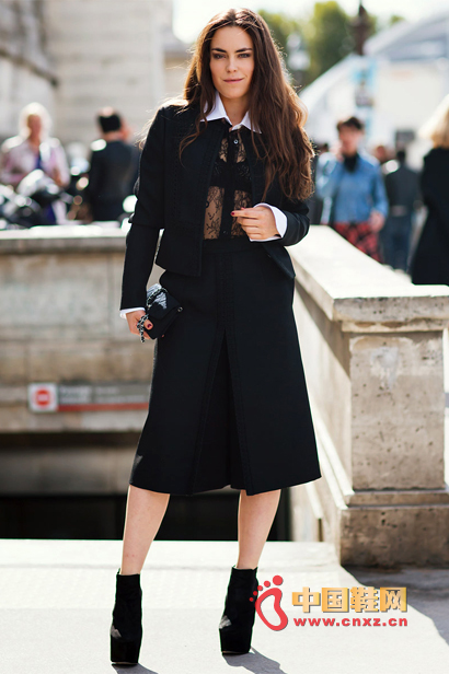 中國(guó)鞋網(wǎng)12月29日訊,在寒冷的冬季,一身黑的裝扮大概隨處可見(jiàn),可是如何將這從頭到腳的黑色穿出時(shí)髦穿出氣場(chǎng)來(lái),還是需要精心搭配的。其實(shí)明星潮人也酷愛(ài)全黑的裝扮,下面來(lái)看看她們是如何搭配出街的吧。