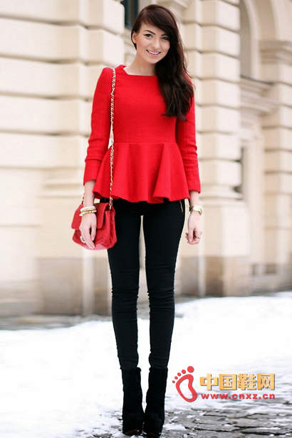 中國鞋網(wǎng)1月14日訊,紅色與黑色的搭配可謂是最經(jīng)典也不容易出錯的搭配了,用紅色來點(diǎn)亮全身,亦或是用黑色來抑制張揚(yáng),總之紅黑搭總能給你帶來你想要的穿衣效果,下面來看看潮人們是如何穿搭的吧。