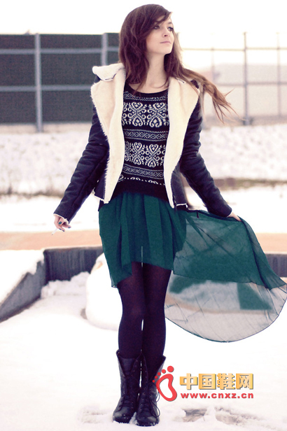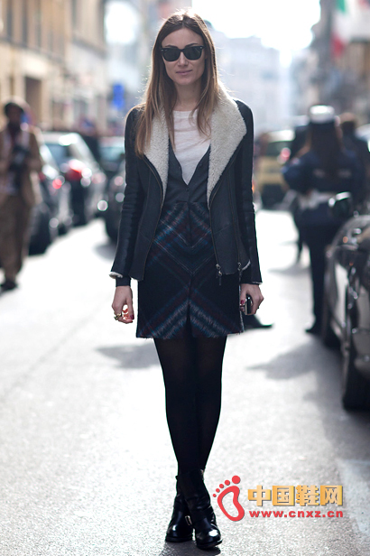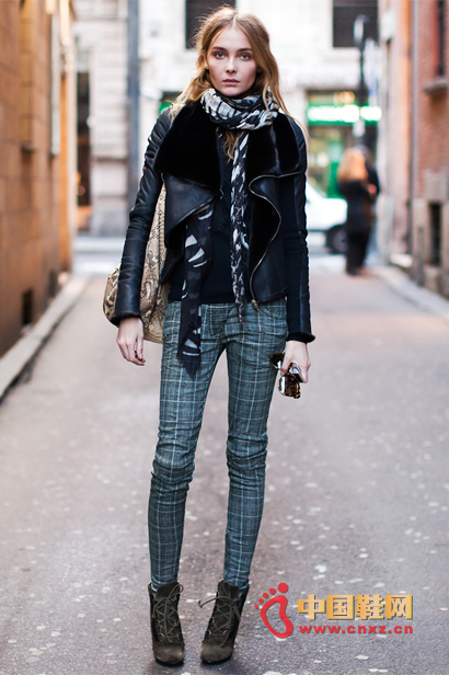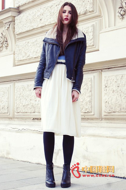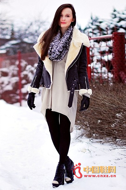 中國鞋網1月22日訊,雖然早春即將到來,但氣溫依舊很低,想要擺脫厚重的棉服又怕寒冷,不如穿上經典有型的翻毛領夾克帥氣出街,帶上墨鏡,穿上靴子,做一個氣場十足的率性女子。