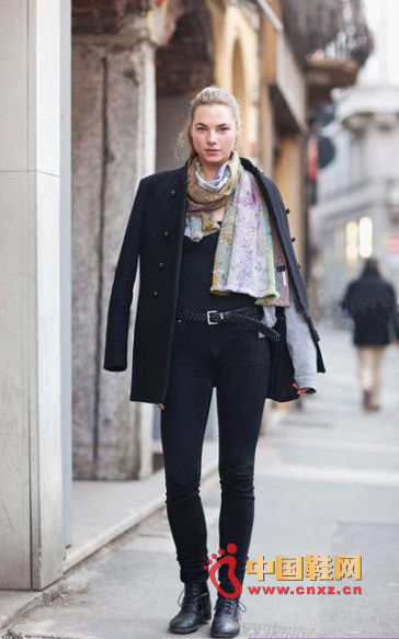中國鞋網1月24日訊,服裝搭配絲巾,一直以來都是溫婉女人味的絕佳體現,然而在中性風潮席卷全球的當下,許多女人也愛上將自己塑造成“硬漢”的feel,如果你還在重復一些三角、花型、披肩式的老系法,難免會和一身中性style顯得格格不入,如何將“無骨”絲巾玩出“硬漢”范兒,細數街頭潮人的時髦搭配。