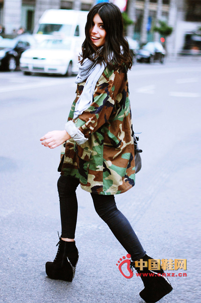 中國鞋網1月29日訊, 想在街頭耍帥扮酷,那么你一定不能錯過迷彩和軍裝。無論是外套、襯衫或是褲裝,只要你穿上它,立馬就能散發出如同軍人般強勢干練的獨特氣質,颯爽英姿,帥氣十足。