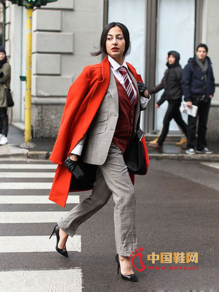 中國鞋網2月26日訊,米蘭的街頭雖寒意依舊,但時裝周秀場外達人們的穿搭熱情不減。亮麗搶眼的橘紅色成為本季街拍的一大亮點,此外,選穿褲裝既能展現帥氣一面,也是迎合天氣的暖心之選。