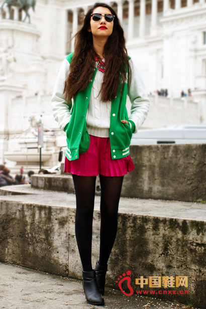 街拍春季運動風 棒球夾克衫混搭才更潮
