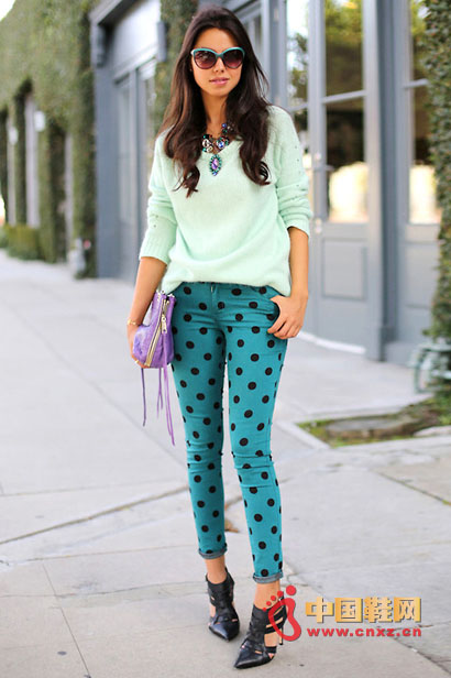 中國鞋網(wǎng)4月25日訊,在條紋和印花橫行的這一季,如果你不想隨波逐流,又不想太過低調(diào),不妨選擇波卡圓點裝,在人群中變身復(fù)古小清新,優(yōu)雅時髦而又不落俗,下面就來看看潮人們的街拍演繹吧。