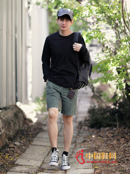 簡單的基本款長袖T恤,寬松舒適的一款,搭配上懷舊點漆水洗處理的短褲,一頂充滿生氣的棒球帽,立刻讓你找到春天的感覺。