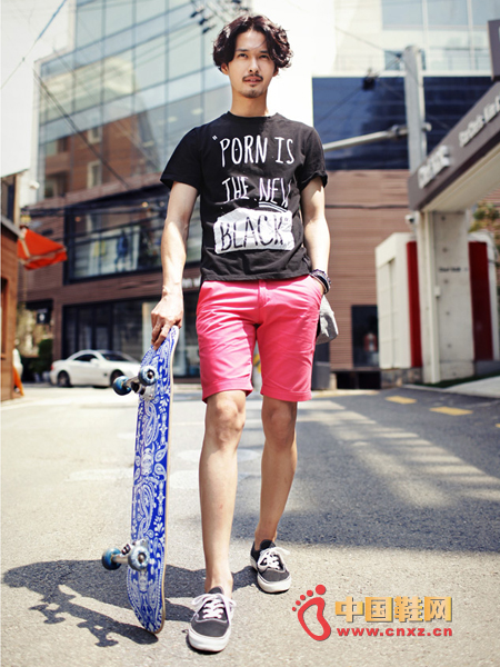 簡單字母圖案的T恤,簡潔的圖案,搭配方便。簡單修身的短褲,簡潔易搭,兩種款式搭配起來穿絕對提高回頭率。