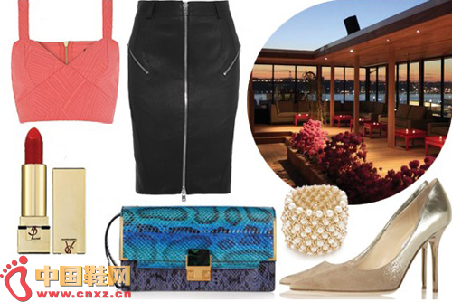 如果你有好身材,那就在這個(gè)夏日大膽秀出來!胸衣式短打上衣+緊身鉛筆裙的穿法,最大限度地展現(xiàn)女人的玲瓏曲線,絕對(duì)是去夜店派對(duì)的最佳裝扮。River Island橘紅色短打上衣搭配McQ Alexander McQueen黑色緊身及膝皮裙,性感指數(shù)百分百!Lanvin漸變色動(dòng)物紋手拿包增加不少狂野氣質(zhì)。而Kenneth Jay Lane珍珠手鏈和Jimmy Choo金色淺口高跟鞋,無疑將這股夜店風(fēng)推向高潮!最后一抹必不可少的烈焰紅唇,就由YSL的迷魅純漾搞定吧。
