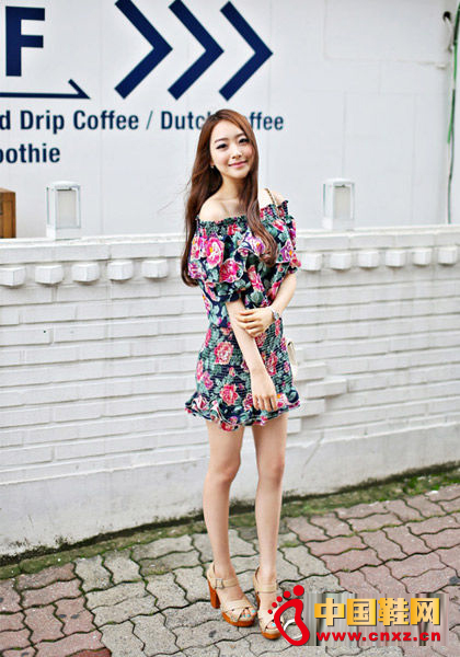 紅色的印花顯得甜美嬌嫩,緊身的包臀裙令腿部顯得修長,配上一雙裸色的高跟鞋,淑女風(fēng)的時尚達(dá)人出場!