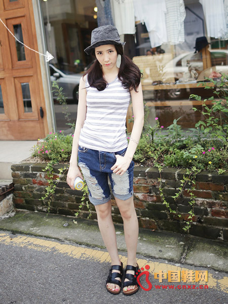 版型超贊的,修身效果很棒,搭配磨破設(shè)計(jì)的5分牛仔褲,在加上平底的羅馬的搭配,舒適又帶來(lái)休閑魅力。