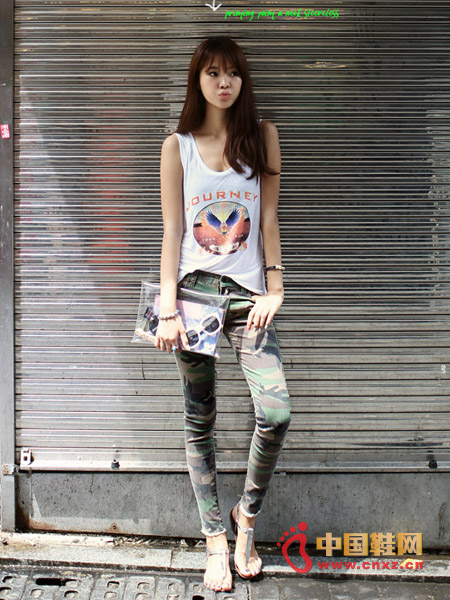 單穿就很有范兒的無(wú)袖衫,適合夏季清爽穿著,簡(jiǎn)潔的U領(lǐng),印花設(shè)計(jì)獨(dú)特,搭配修身的迷彩小腳褲,展示了自然大方的時(shí)尚范兒。
