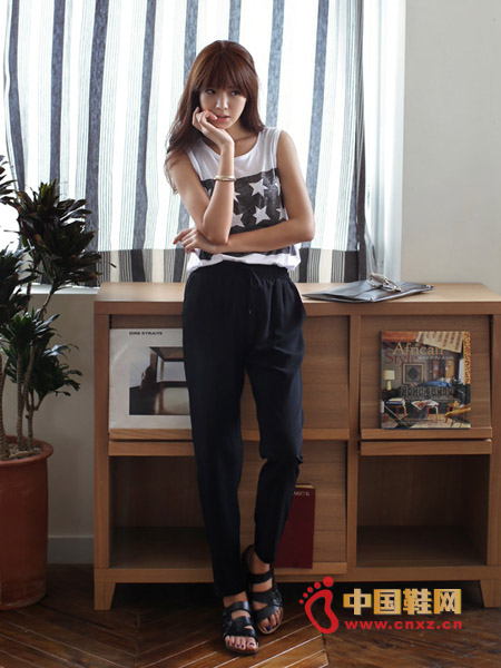 可愛(ài)休閑的寬松背心,五角星圖案的配色,搭配上舒適款,以簡(jiǎn)潔的單品展示不同的時(shí)尚范兒,自然且不失亮點(diǎn)。