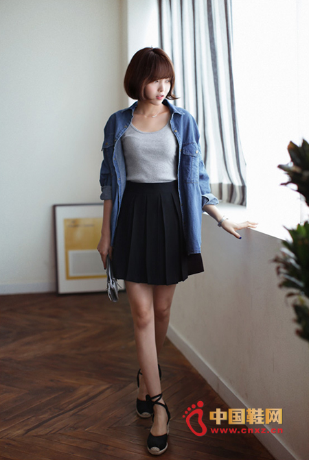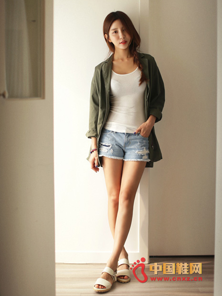 入秋時節必備的寬松帥氣的,質地輕薄,很適合初秋時節穿,隱藏式紐扣開襟,簡約大方,修身顯瘦的背心式連衣裙內搭,再加上超高跟鞋,展現秀場雙腿。