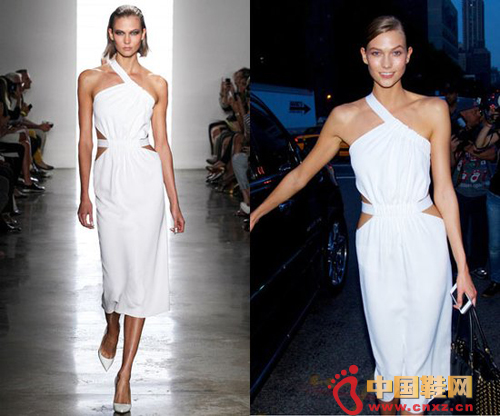 所謂近水樓臺先得月也不過如此了,五天前走秀穿著自己愛不釋手的Cushnie et Ochs鏤空裙,五天后就據為己有,這速度簡直無人能及,同樣的衣服,自己和自己比,臺上硬氣,臺下甜美,魅力之所在。