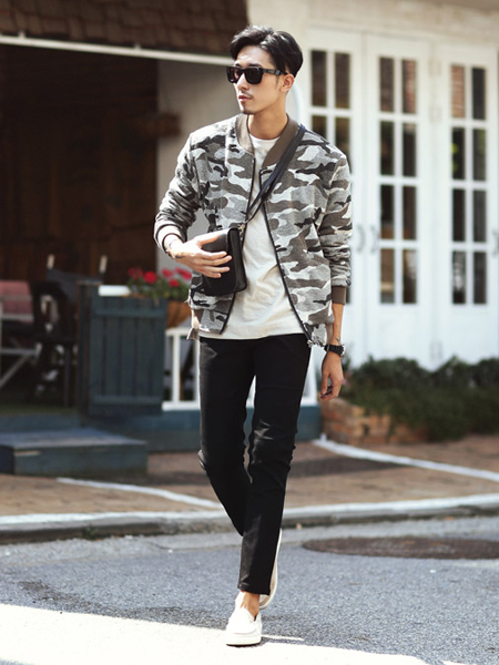 時尚迷彩圖案的,迷彩圖案,懷舊色調(diào),袖口衣擺都有寬邊處理,內(nèi)搭休閑T恤和修身款長褲穿著,穿出成熟養(yǎng)眼的干練風(fēng)格。(合作媒體:)