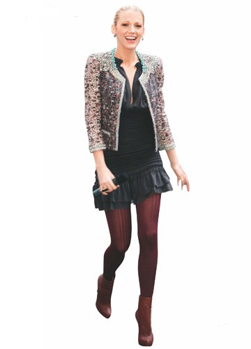 花色軟呢夾克搭配T 恤或者襯衫,再配上性感的高跟鞋,讓身材顯得更加完美高挑。