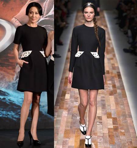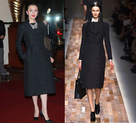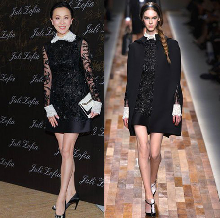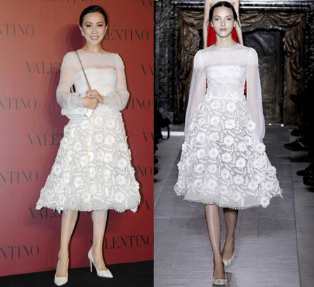 2013年11月14日,Valentino上海大秀,劉嘉玲亮相。她身穿白色蕾絲提花傘裙、肩背鏈條包、腳踩白色尖頭鞋,優雅動人。