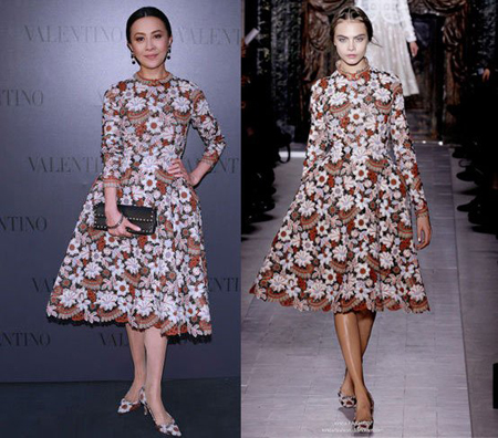 與Valentino上海大秀同日,劉嘉玲出席了品牌店的開幕剪彩。碎花裙怡人,襯其高貴氣質。