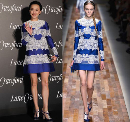 中國鞋網11月22日訊,回首2013年,劉嘉玲最鐘愛的品牌非華倫天奴(Valentino)莫屬。可以說她把Valentino穿了個遍,從2013春夏系列到春季高定、秋季高定、秋冬系列,無一漏網。