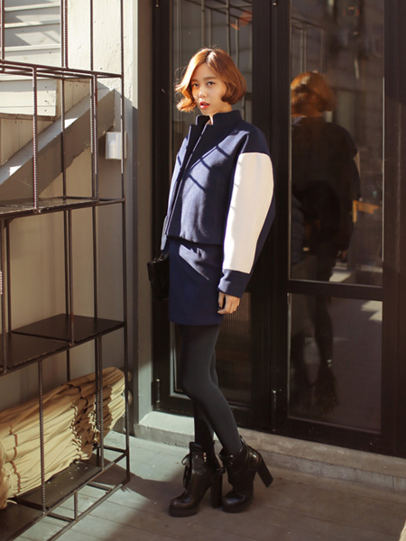 冬季大熱的廓形外套,既挺括又有質感就是今年冬季的大衣主打趨勢,簡潔拼色設計,很有摩登氣質,下搭配套的MINI短裙,搭出別致風范。