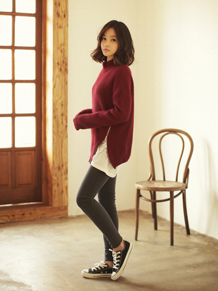 溫暖的安哥拉山羊毛針織衫,拉鏈的細節設計,可任意開叉造型。中高領的款式,保暖又不顯得沉悶,內搭長款T恤,下搭修身小腳褲,展露休閑的感覺。(合作媒體:)
